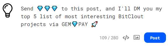 Create a post on BitClout explaining what you're offering in return for Diamonds.