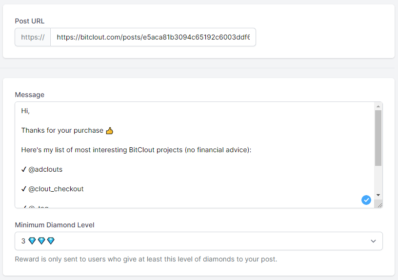 We'll take it from there and automatically send your reward message to anyone "diamonding" your post!